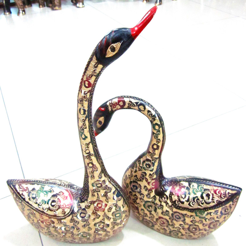 Pakistan handicrafts imported Pakistani bronze bronze sculpture animal 16-inch couple goose gift