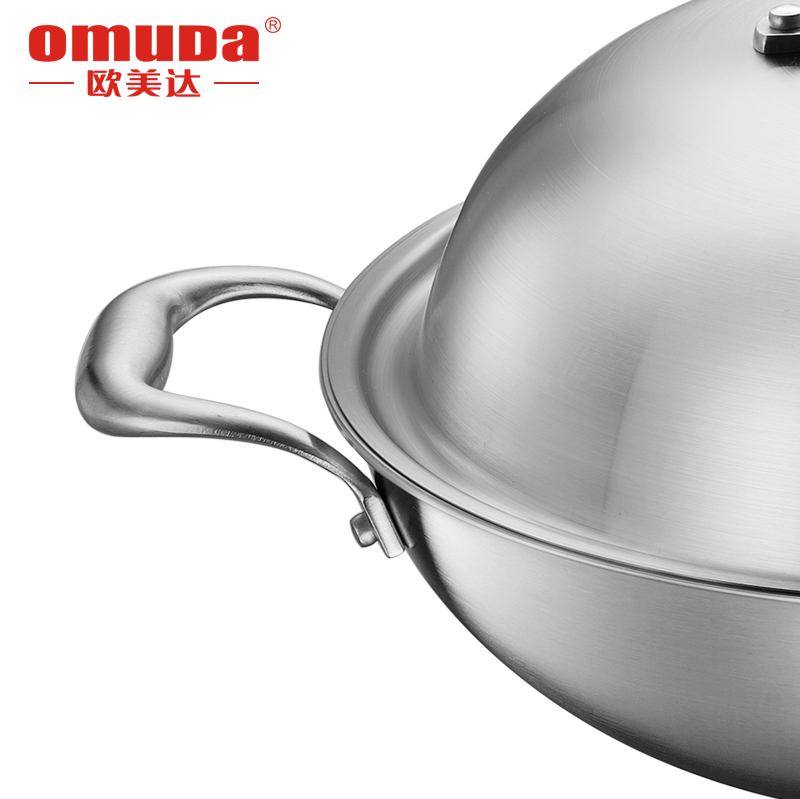 European Meida stainless steel wok less lampblack vegetable pot uncoated induction cooker physical non-stick pan 30cm