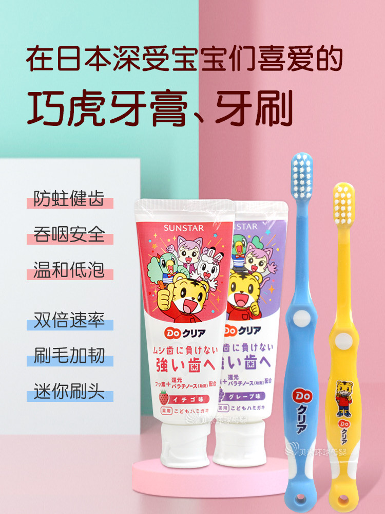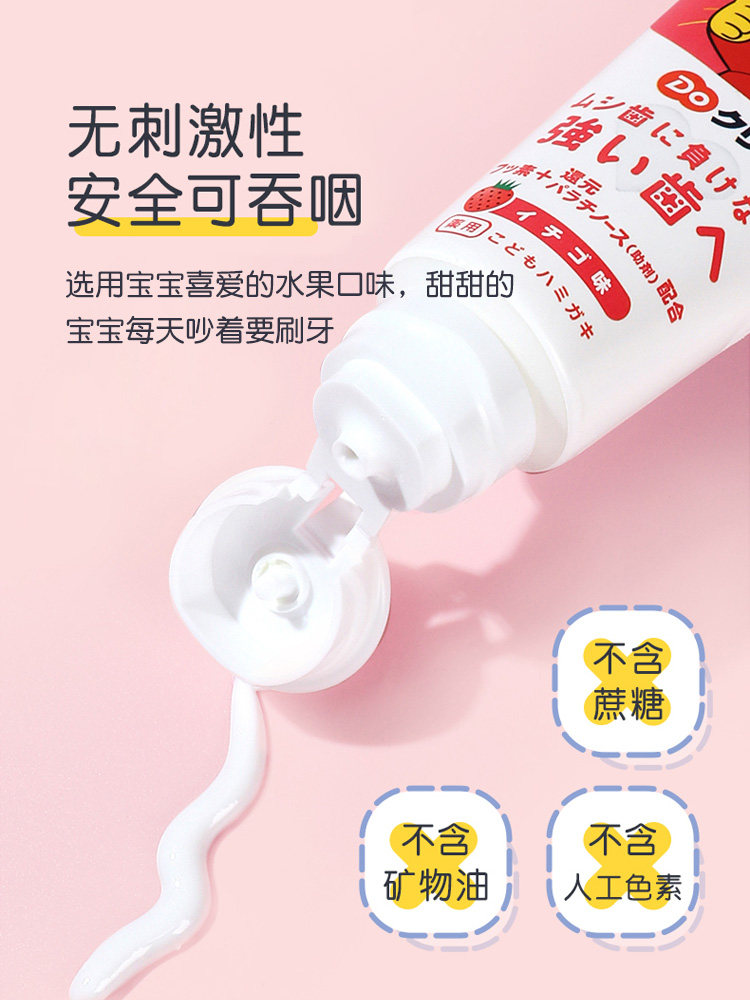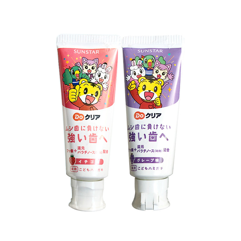 Japan imports Sunstar Qiaohu baby Children's toothpaste with fluorine swallowed to prevent macular strawberry grapes