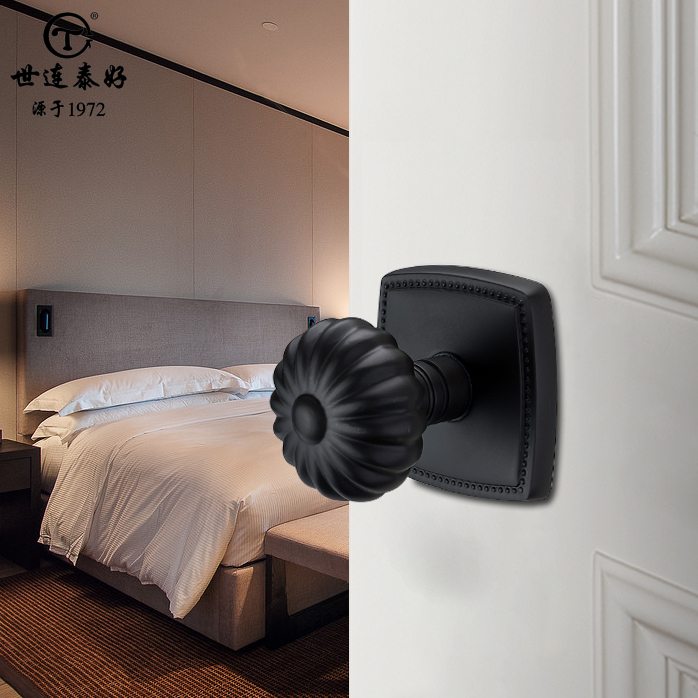 Shiliantai good pure copper black antique indoor bedroom bathroom keyless ball door lock golden retro handle