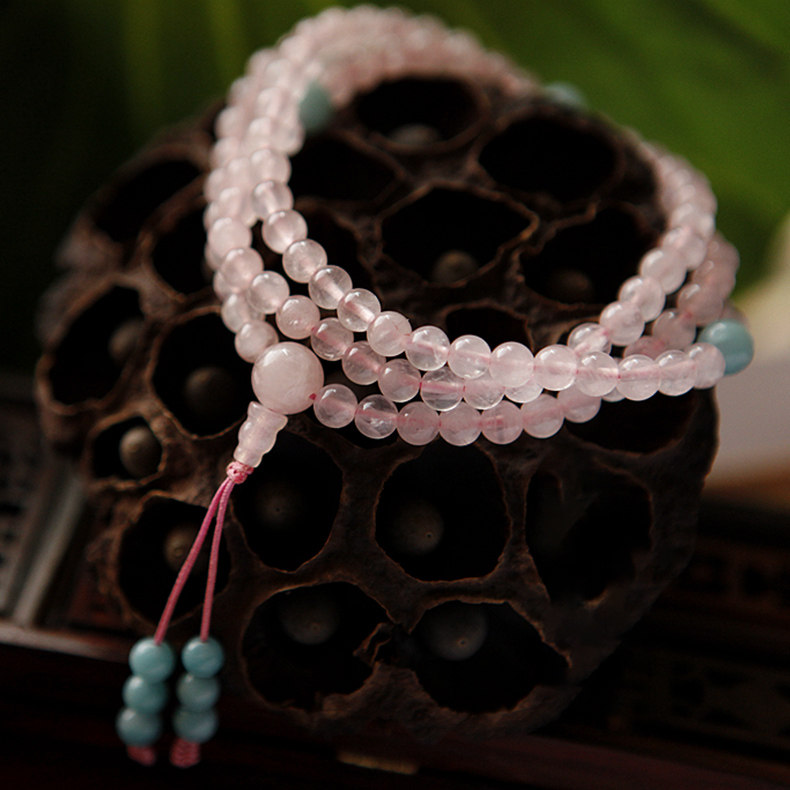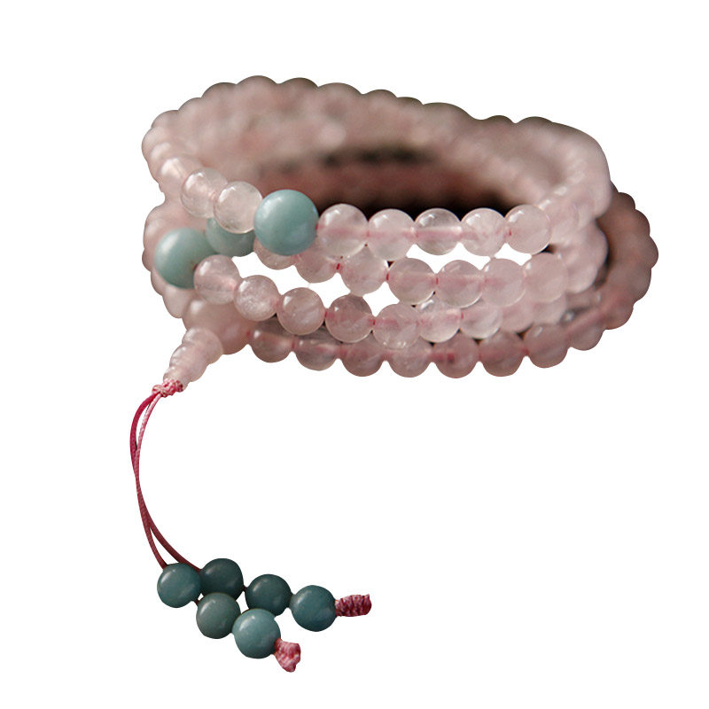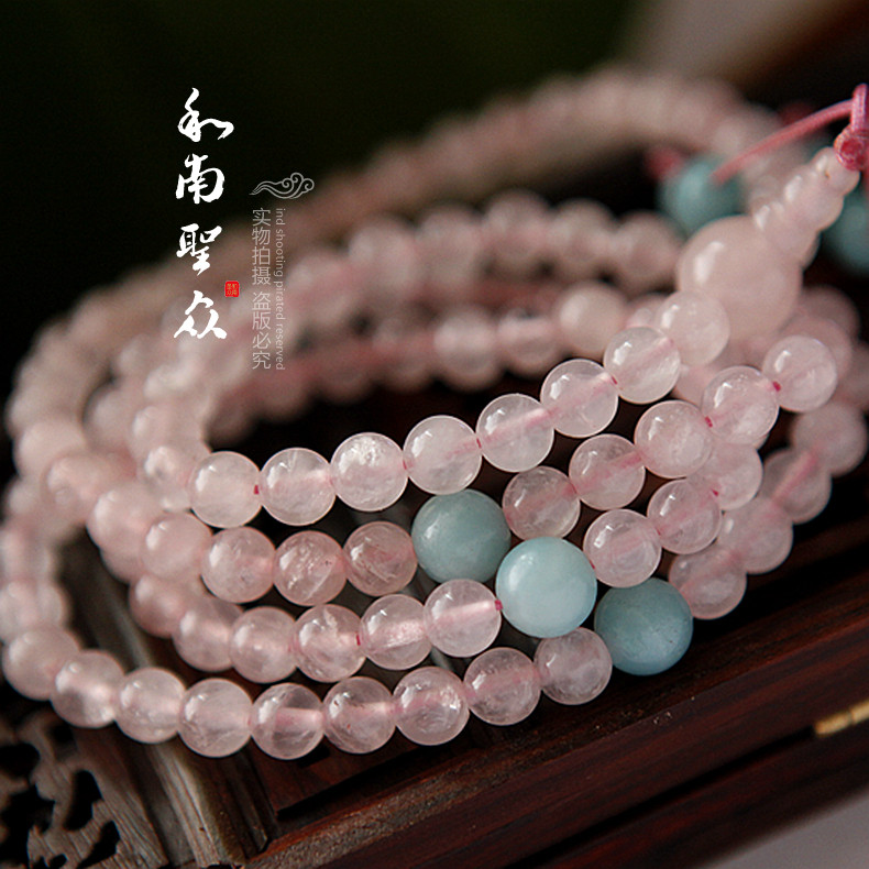 And Nanshengzhong natural powder crystal 6 8mm108 beads women's multi-layer hand string valentine's day gift