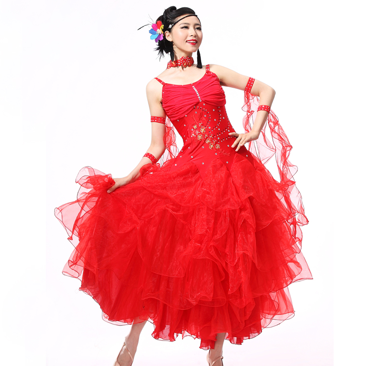 New suspenders luxury diamond-set modern dance dress performance suit National standard dance dress competition dress Waltz dance dress