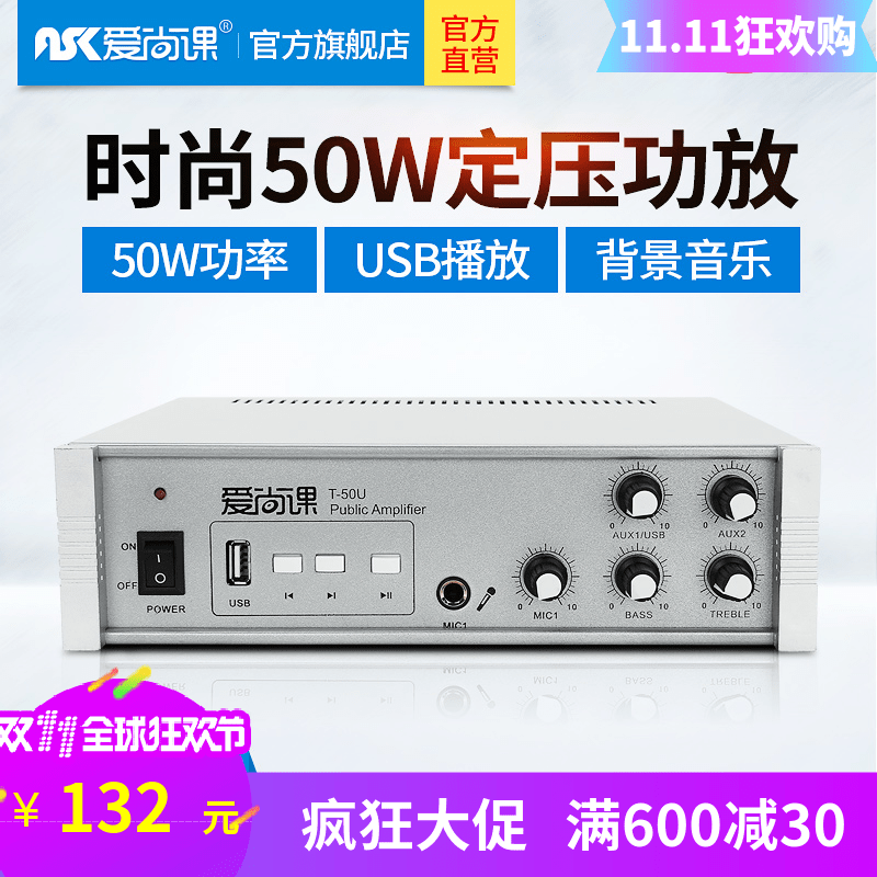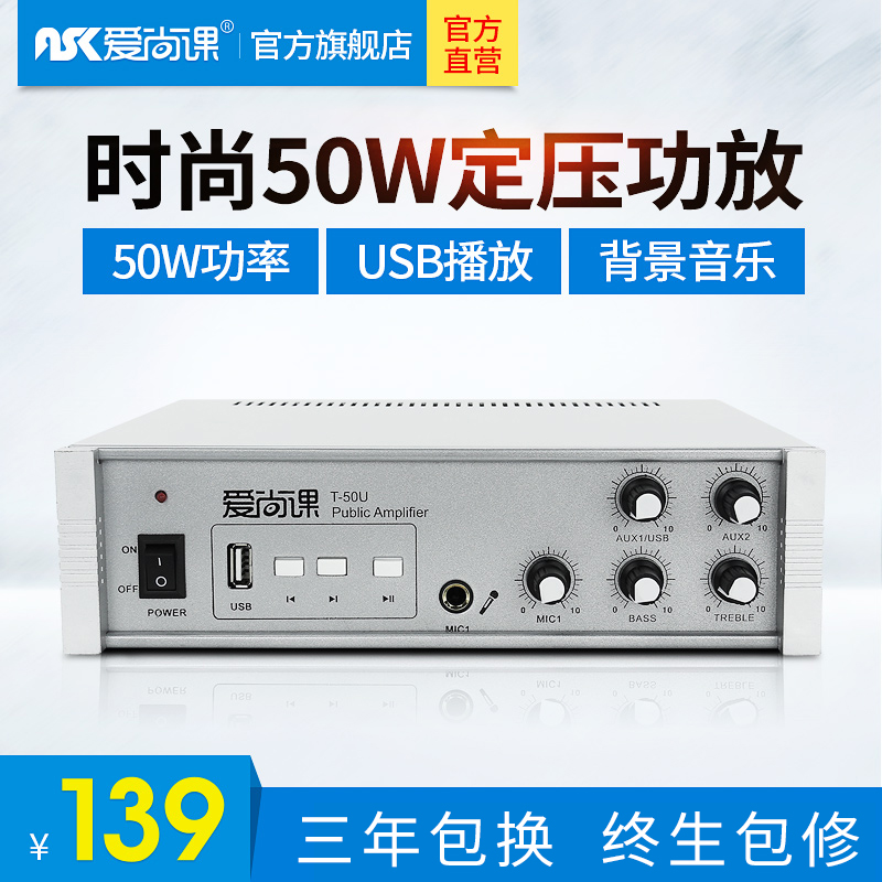 Aishangke T-50U broadcast constant voltage power amplifier 50W home background music USB ceiling speaker small power amplifier