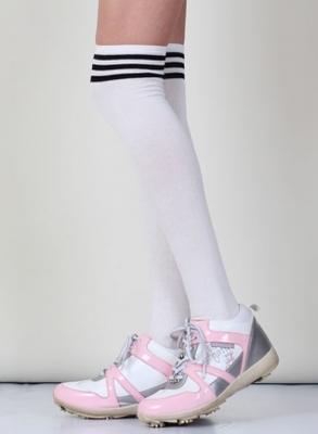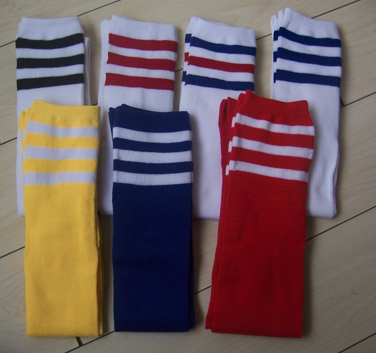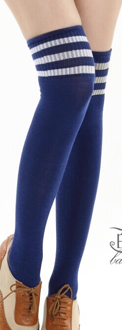 Dark purple over the knee white 3 black bars over the knee black 3 white bars in the middle barrel without heel white 3 red bars over the knee white 3 blue bars over the knee blue 2 white bars in the middle barrel without heels 3 blue bars