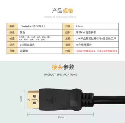 CYK HD DP line DisplayPort monitor dell splicing screen projector 4K60hz cable 20 m