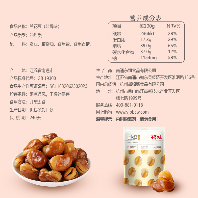 Salt baked flavor 210g (red version) Orchid bean (beef flavor) 210g old vinegar broad bean 100gx2 bag (Sichuan spicy hot pot flavor) 210g