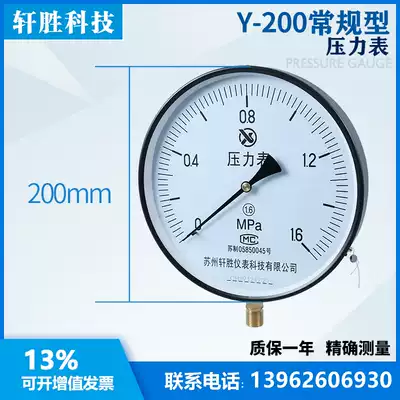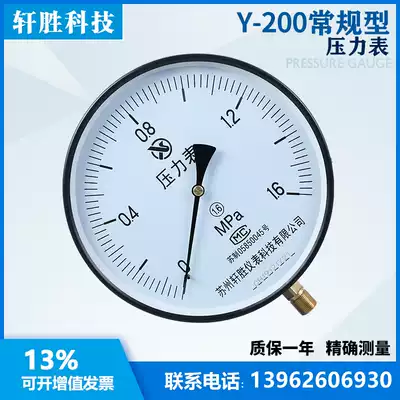 Y200 1 6MPa spring tube pressure gauge steam boiler pressure gauge Suzhou Xuansheng