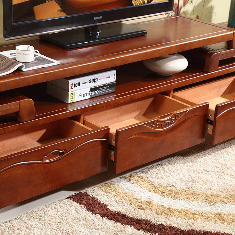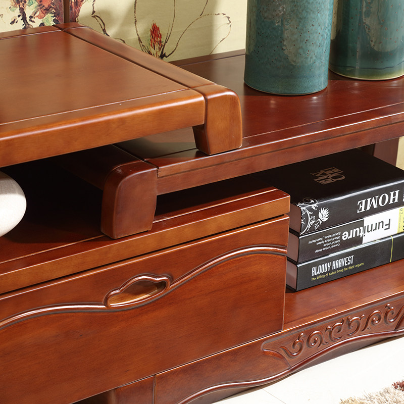 Solid wood TV cabinet modern Chinese style low cabinet simple locker living room free telescopic floor cabinet