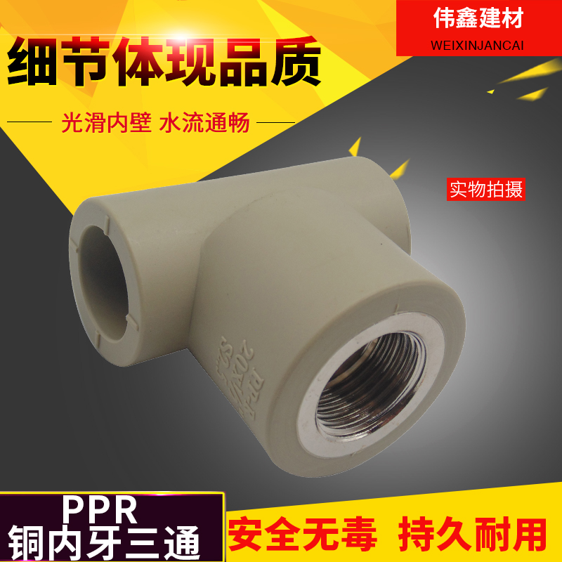 PPR copper inner wire hot melt different diameter internal thread tee 32*25*20 water pipe tee 6 minutes to 4 minutes 1 inch