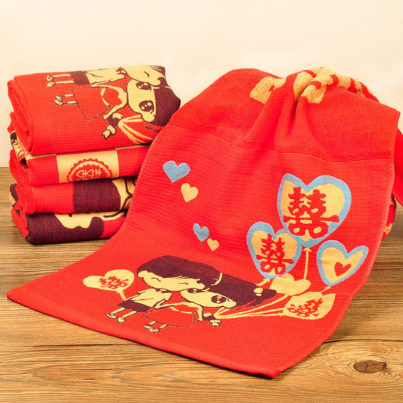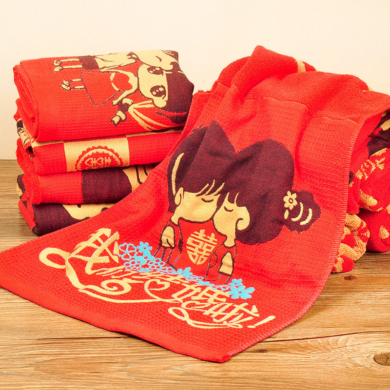 Wedding Celebration back Lilly Pure Cotton Towel Lovers Embroidered with Festive Wash Face Wedding Big Red Face Towels Thickened Gift