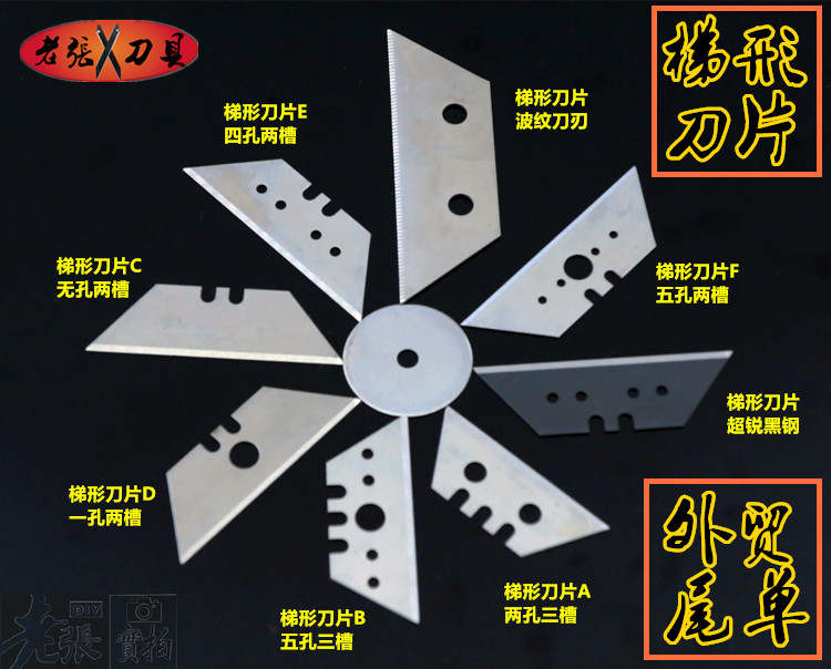 Transparent boxed Trapezoidal Five Holes Triple Trough 10 Pieces Transparent Boxed TRAPEZOIDAL ONE HOLE Two Grooves 10 Pieces Fit Transparent Box Fit ● Trapezoidal Four Holes Two Slots 10 Pieces Boutique Black Blades TRAPEZOIDAL FOUR HOLES TWO GROOVES 1