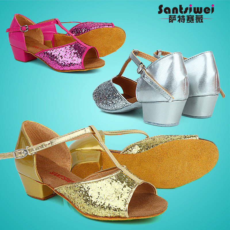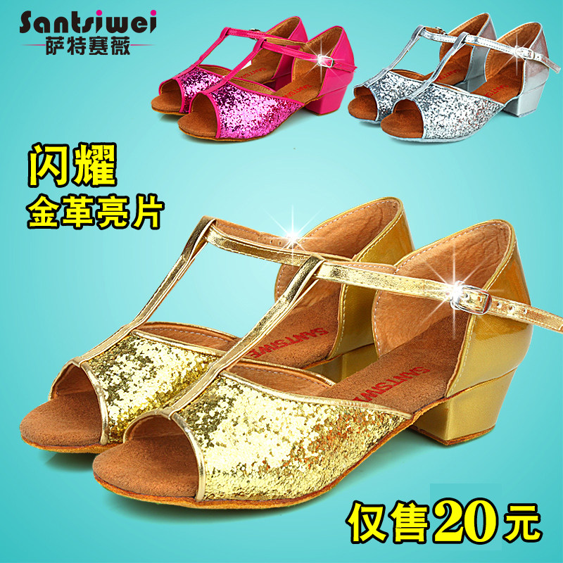 Girls children's Latin dance shoes girls golden dance shoes sequined fish mouth dancing shoes elementary school students summer
