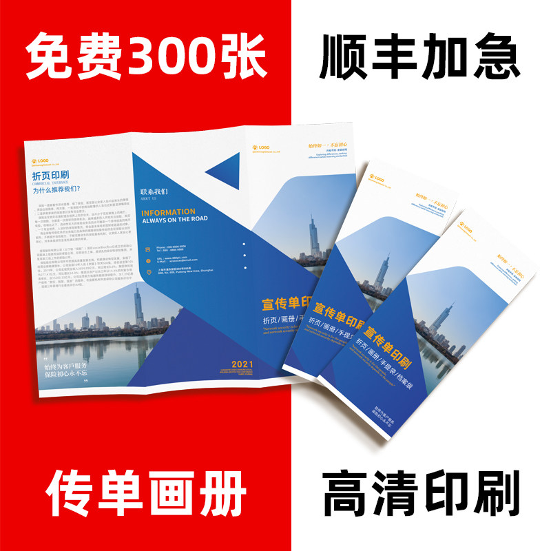 Leaflet printing color page printing leaflet production free design three fold printing enterprise brochure customization small batch printing DM single page Company picture book double-sided color printing A4 advertisement