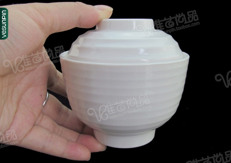 Meiri Jiabao Hotel Melamine Tableware with Lid Small Soup Bowl Rice Bowl White Plastic Bowl Soup Bowl Dessert Bowl D031