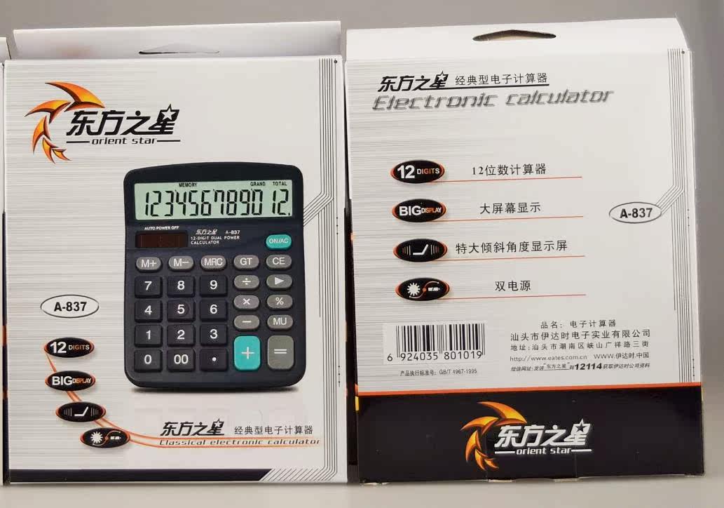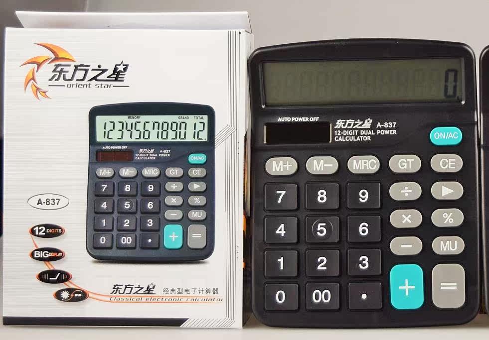Oriental star A-837 big-screen display calculator 12 dual power solar office calculator