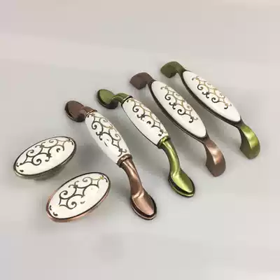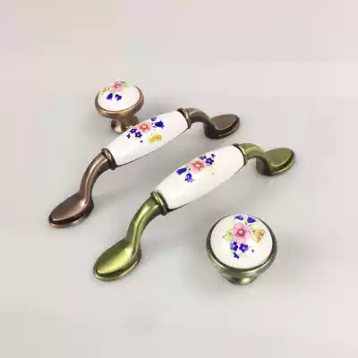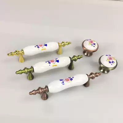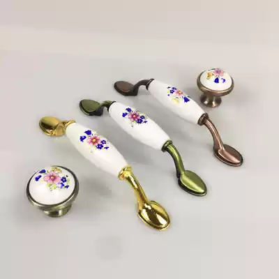 Curcuma 96mm orchid ceramic handle blue and white porcelain antique European style pastoral clothes overall cabinet door drawer single hole handle