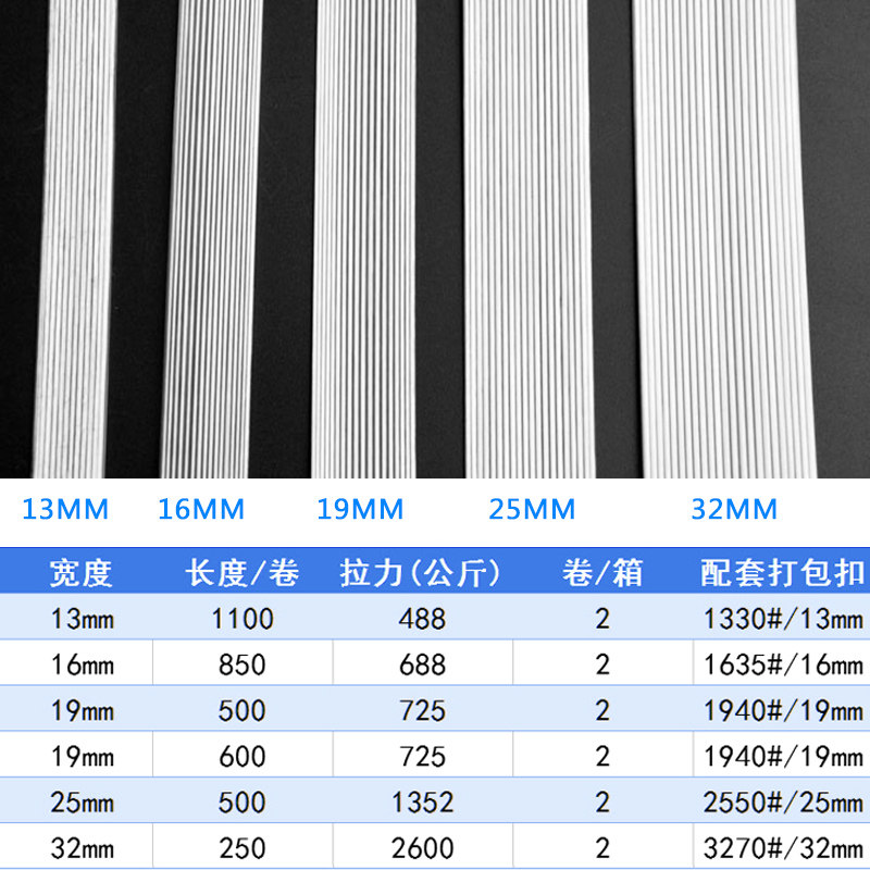 Packing bandwidth 1.3 cm - length 1100 m Package width 1.6 cm - length 850 m package bandwidth 1.9 cm - length 500 m package bandwidth 1.9 cm - length 600 meters package bandwidth 2.5 cm - length 500 meters package bandwidth 3.2 cm - length 250 meters 1330 package buckle 1.3 cm wide use 500 1635 pack buckle 1.6 cm wide use 500 1940 pack buckle 1.9 cm wide use 500 2550 pack buckle 2.5 cm wide use 250 2560 pack buckle 2.5 cm wide use 100 3270 pack buckle 3 .2 cm wide use 50 1330 pack buckle 1.3 cm wide use 1000 x 1635 pack buckle 1.6 cm wide use 1000 x 1940 pack buckle 1.9 cm wide use 1000 x 2550 pack buckle 2.5 cm wide use 500 x 2560 pack buckle 2.5 cm wide use 500 x 3270 pack buckle 3.2 cm wide use 250 pcs