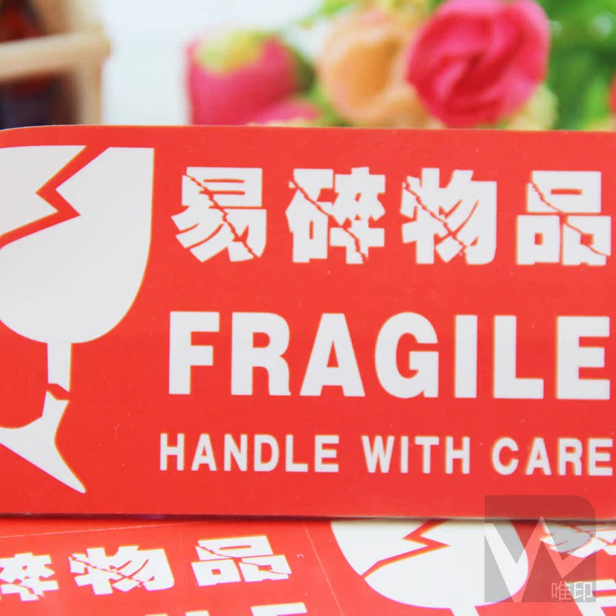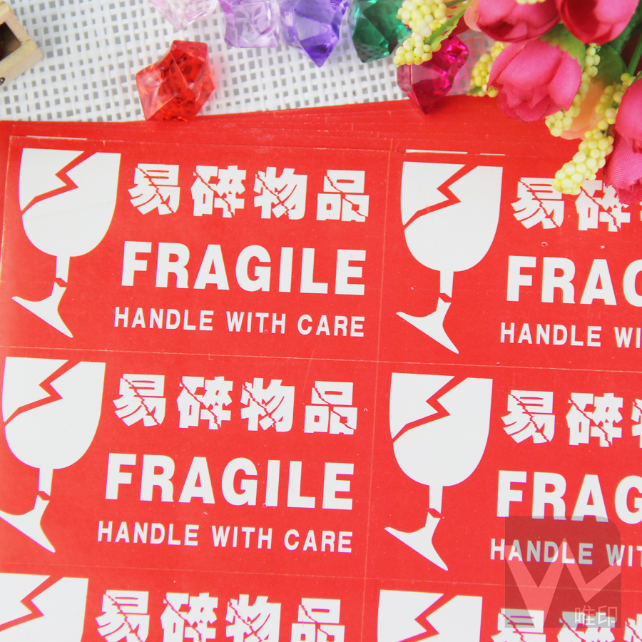 Warning tone adhesive label fragile article notice sticker in English and Chinese against seal