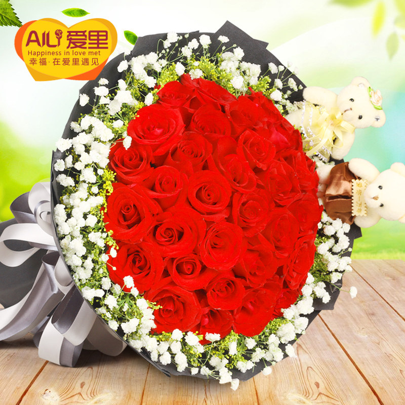 33 red rose bouquet flowers with flowers express Tongcheng Beijing Shanghai Guangzhou Chengdu Nanjing, Tianjin