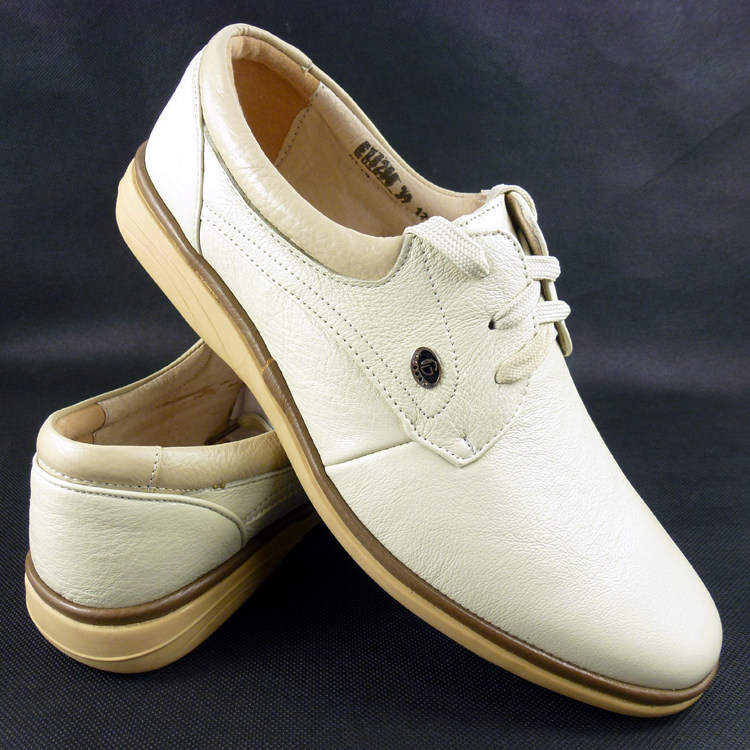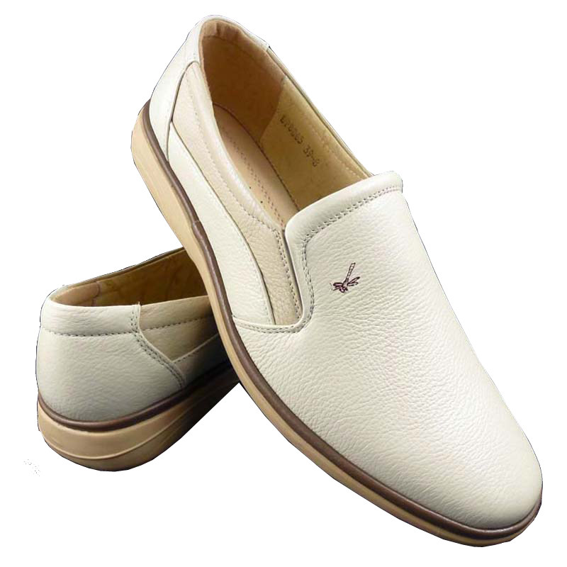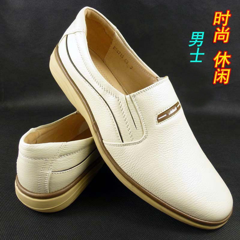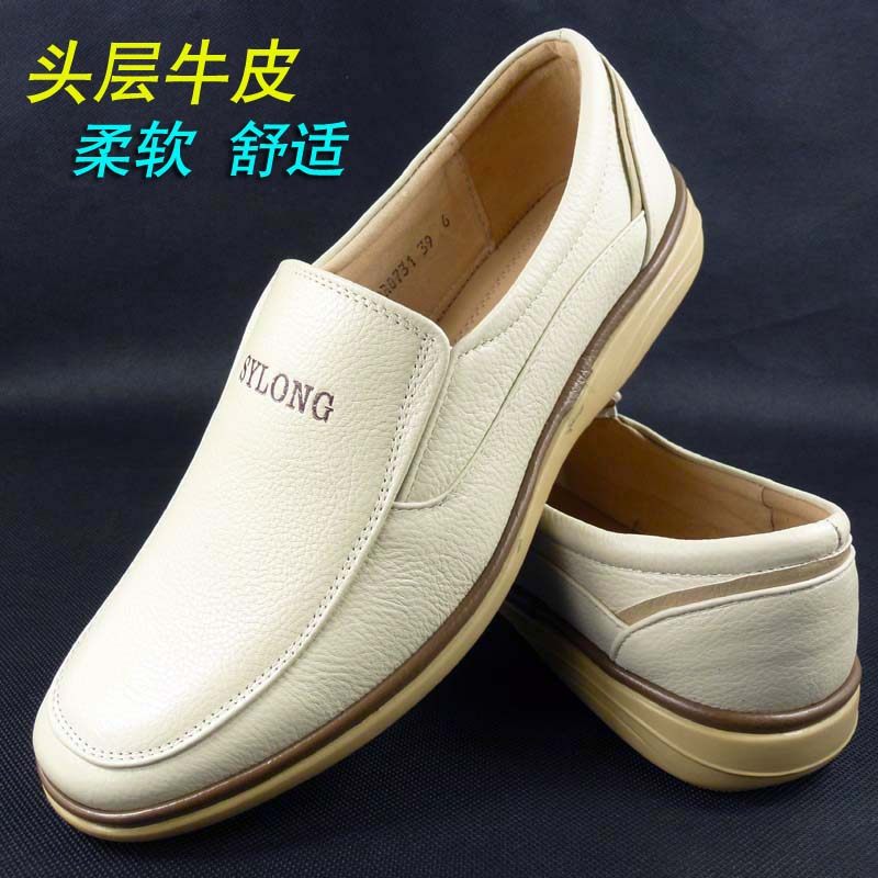 New Genuine Leather Light Color Men's Shoes Rice White Casual Male Leather Shoes Soft Bull Leather Business White Shoes Han Edition Dad Single Shoe Tide-Taobao