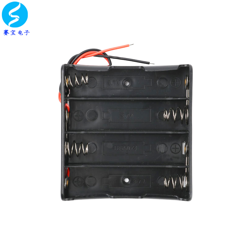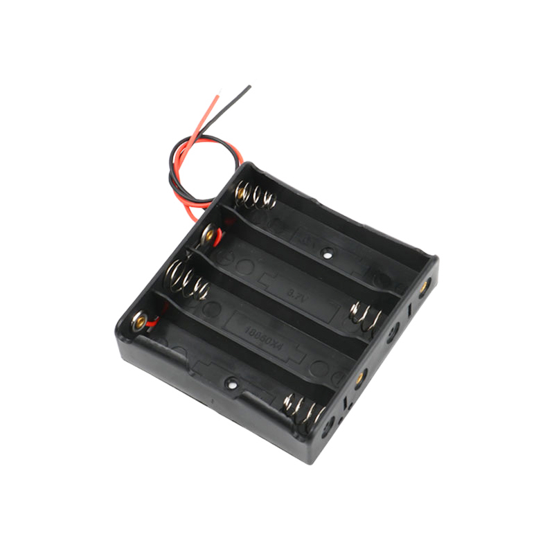 Premium Black 18650 Battery Case Tandem 4 Knots Battery Case Charging Seat Four Knots Battery Cartridges Wire length 15cm
