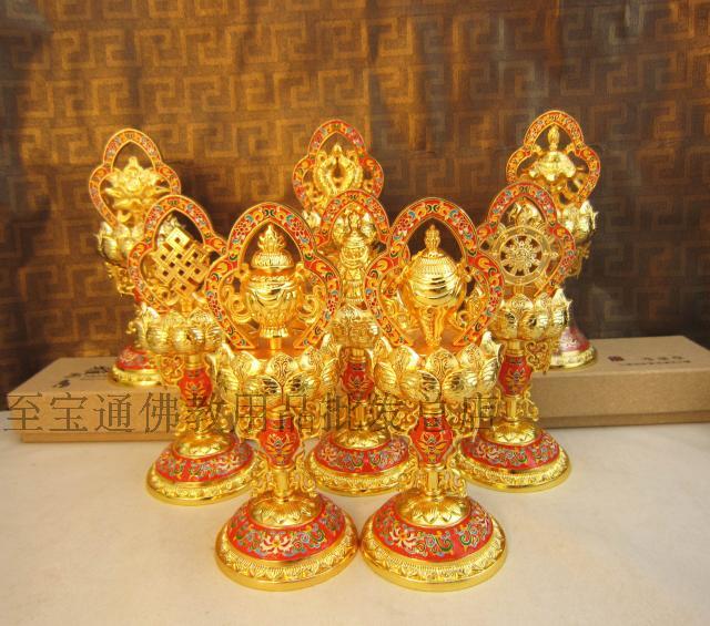 Tantric Tibetan Buddha Nepal craft auspicious eight treasures 6 5 inch pure copper zinc enamel craft eight auspicious ornaments