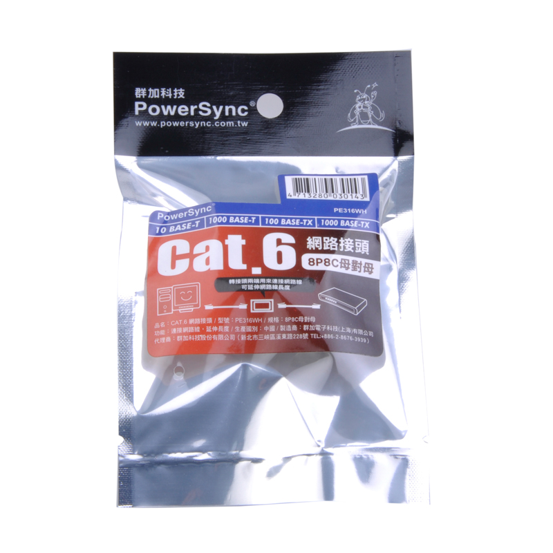 PowerSync PE316WH Category 6 Network Junction Box Female to Female Straight Connector