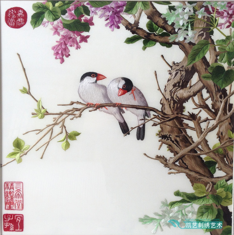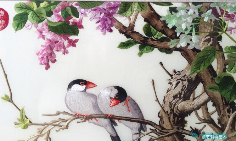 Su embroidery finished living room painting Hand embroidery flower swallow bedroom hanging painting Lang Shining flower and bird painting Study hanging painting