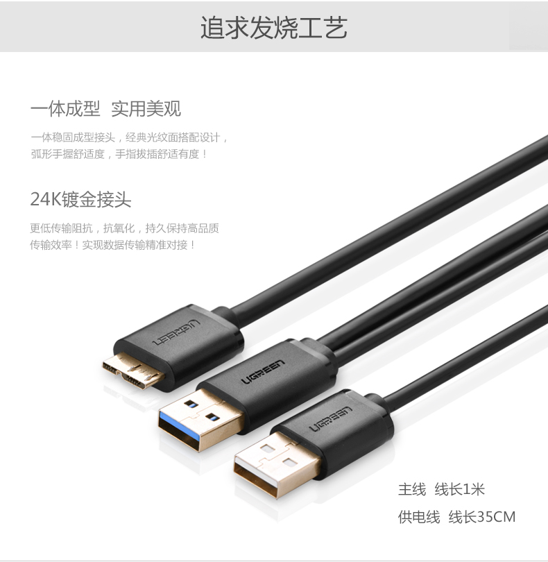 Green Union USB3 0 carry-on hard disc data line Double head usb powered high speed applicable Hijer WDWestern memory of Jetto