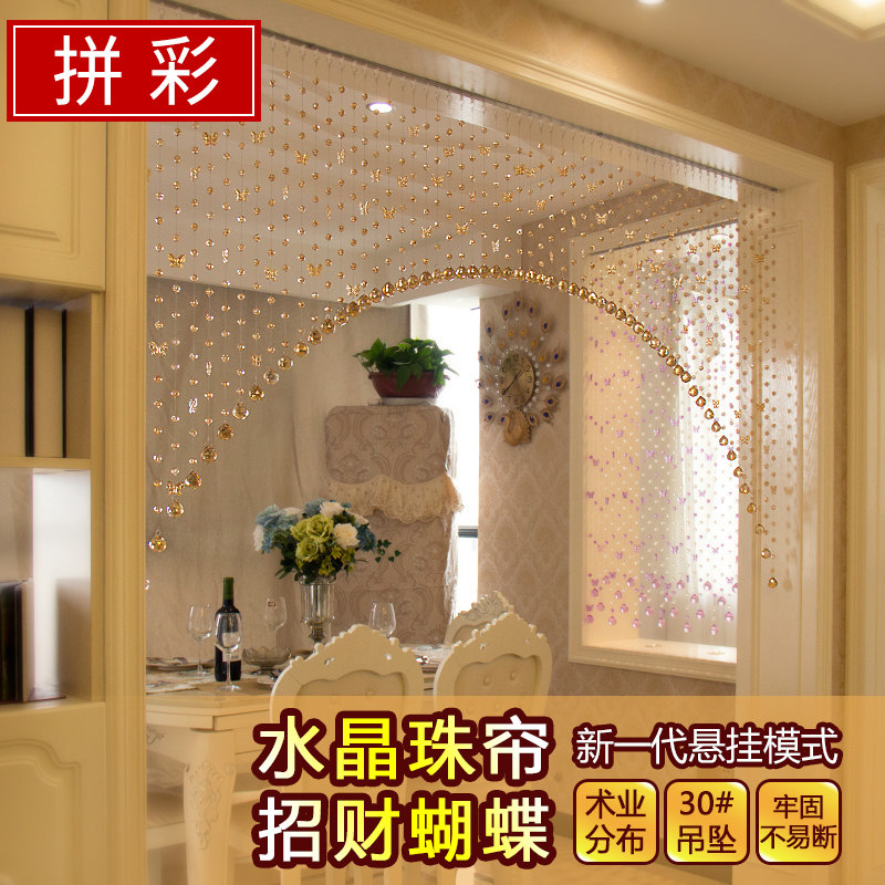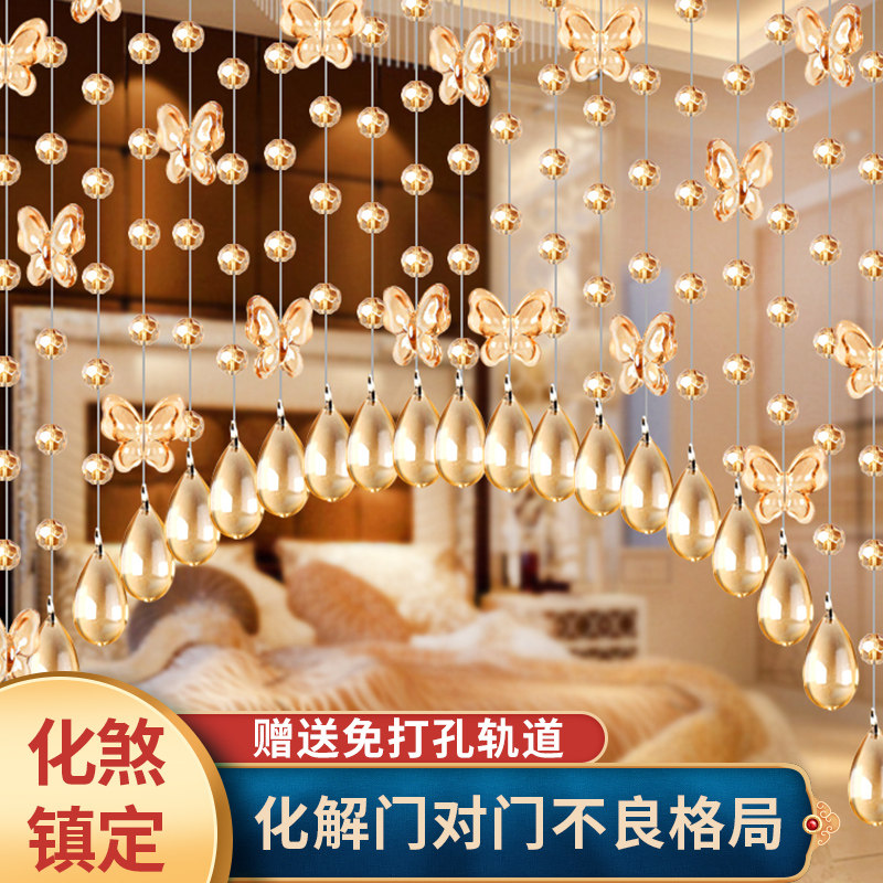 Bead curtain crystal door curtain porch bedroom living room partition curtain toilet aisle Net red door curtain decoration no hole