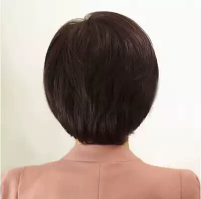 Full real hair lady middle-aged wig short hair female summer mother short wave hair hair wig set