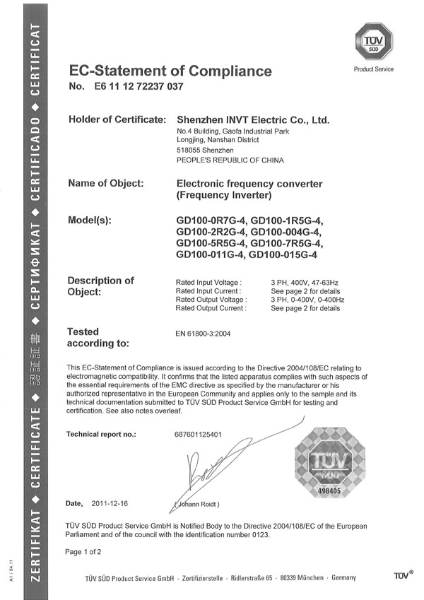 Ingwitten frequency converter GD100-1R5G-4 adaptation motor 1 5KW 380V brand new
