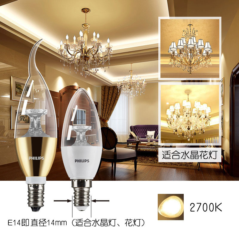 Philips LED energy saving lamp e14 screw tip bubble candle bubble home super bright transparent 5w yellow LED bulb