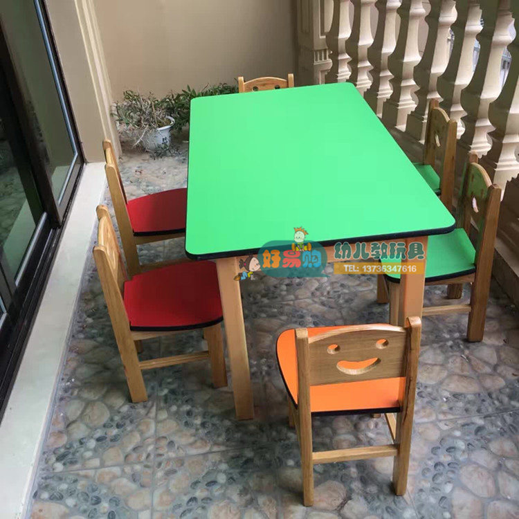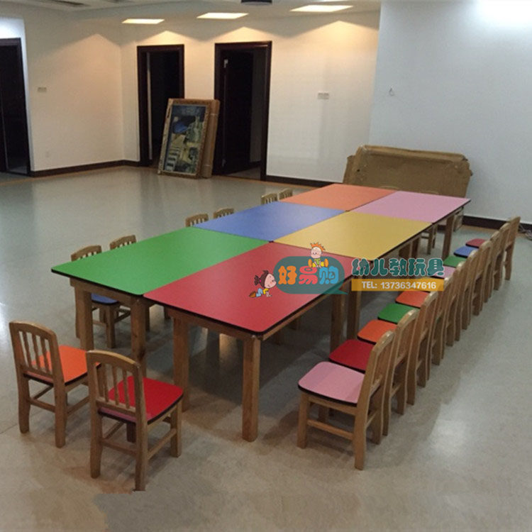 Kindergarten solid wood tables and chairs children's wooden rectangular six-person learning table game table desk toy table long table