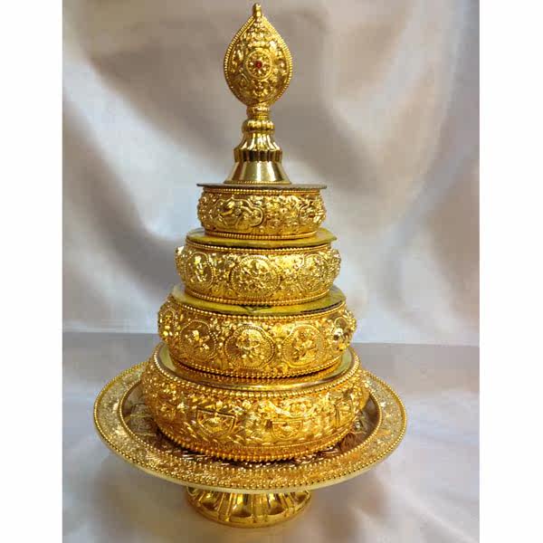 Supplies for Buddha Nepalese craft gold-plated Manzapan large four-plus line for Manchaluo with tray