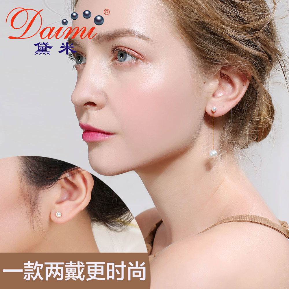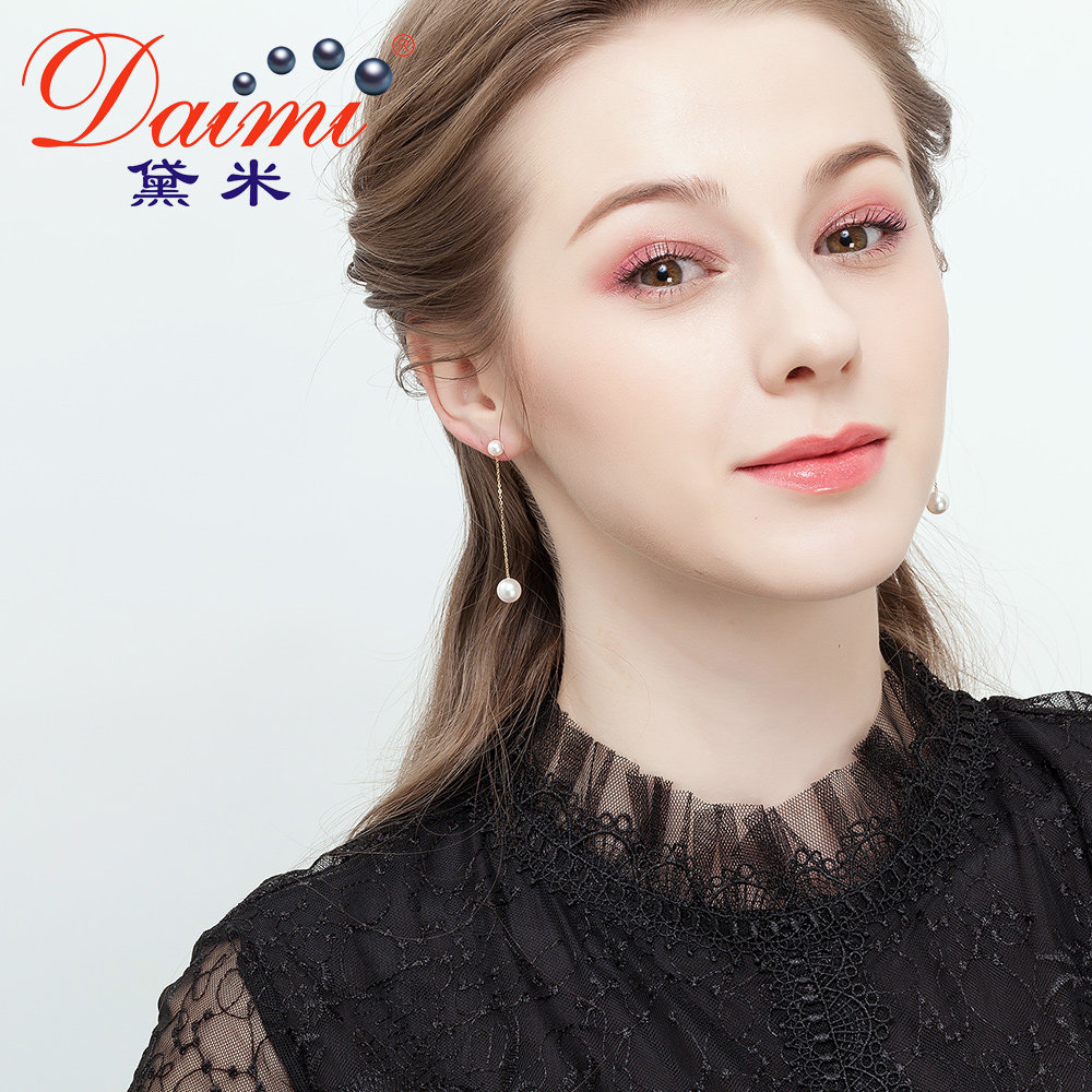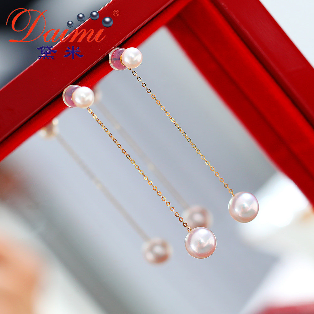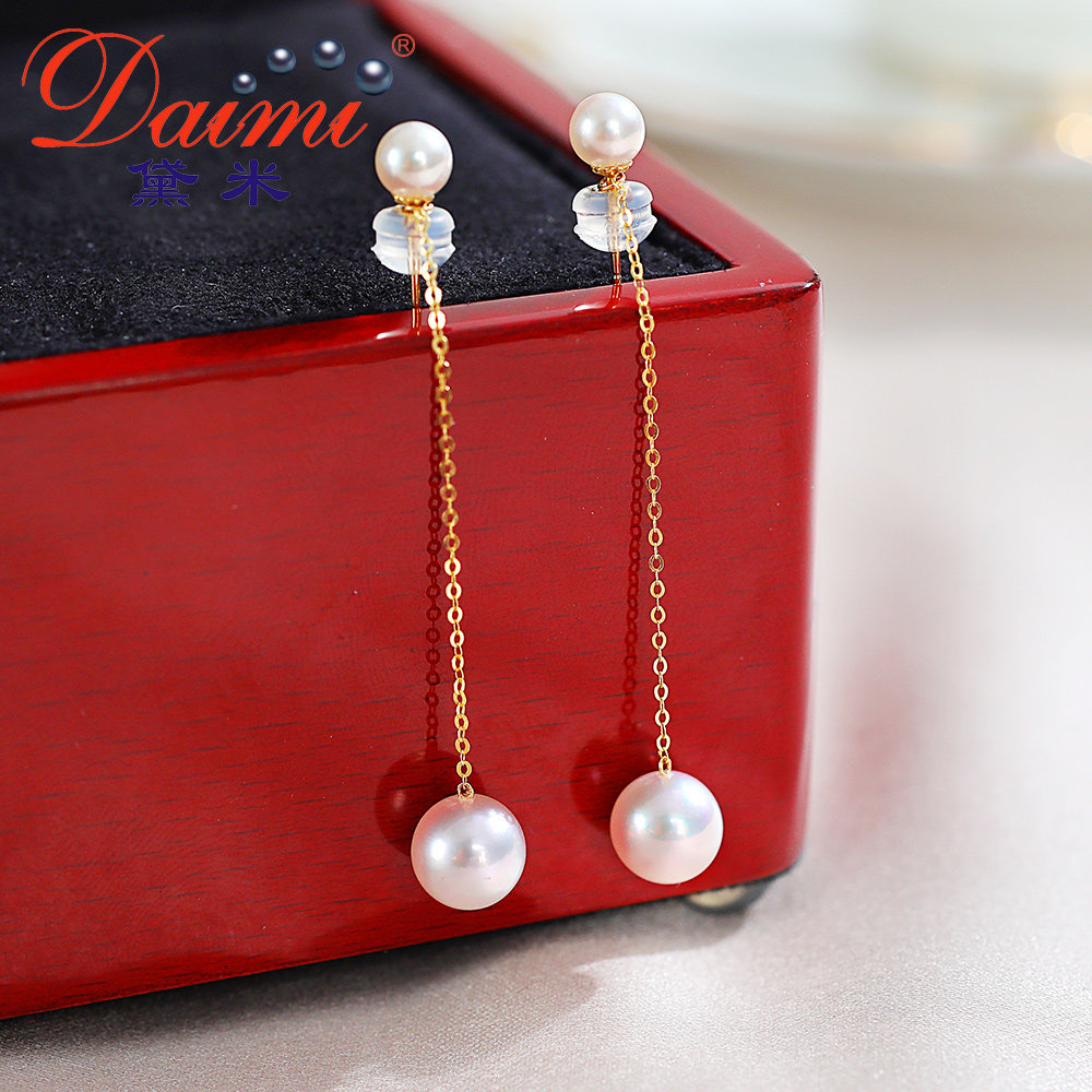 Demi Jian Shun Round Akoya Seawater Pearl Earring G18K Gold Earring Size Beads Long Earring String Female
