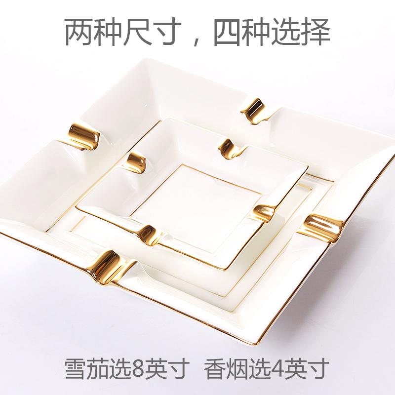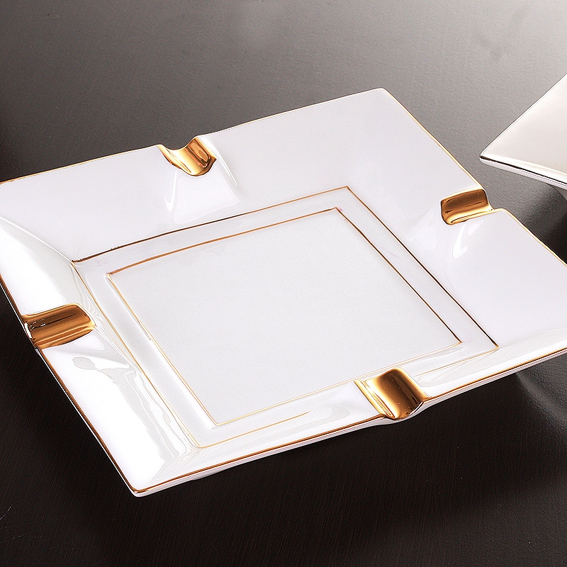 Large gold-painted bone china cigar ashtray hotel club office living room European-style fashion ceramic ashtray ornaments