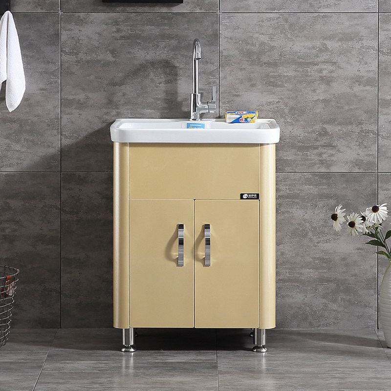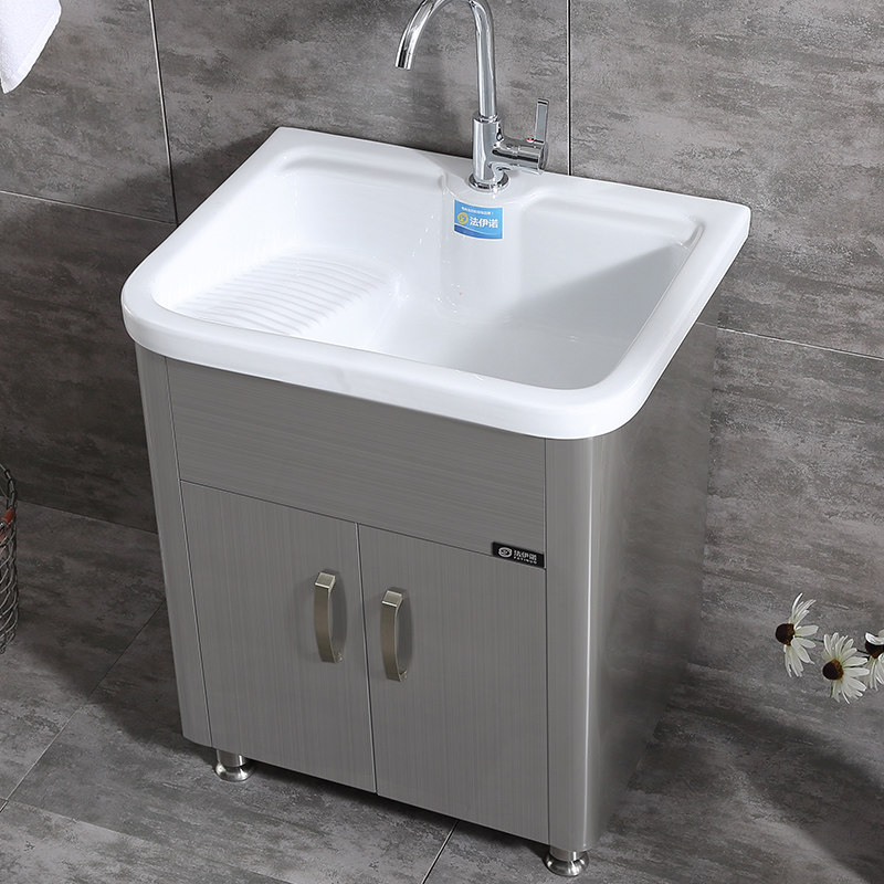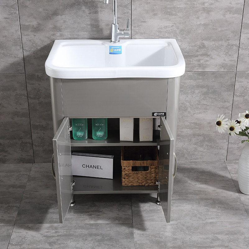 Fayno New Stainless Steel Wash Wardrobe Balcony Cabinet Combined Bath Cabinet Ceramic Laundry Pool Wash Basin with washboard