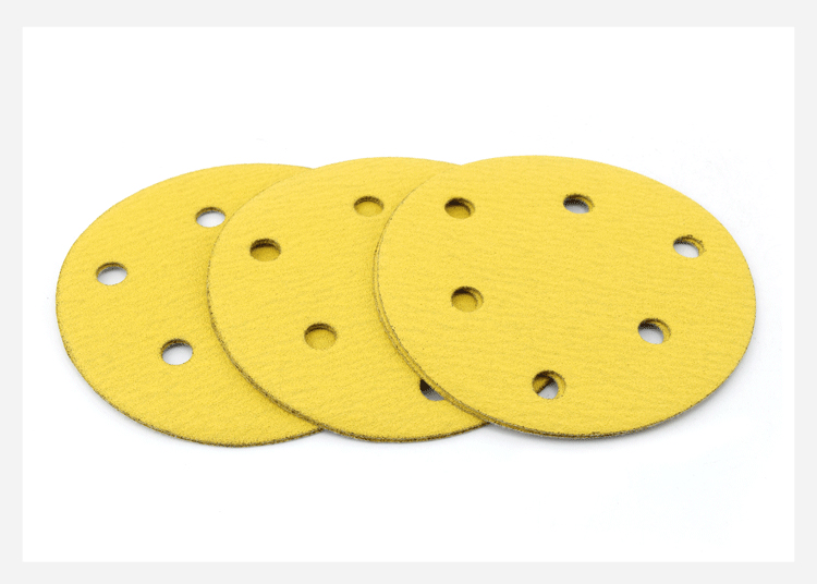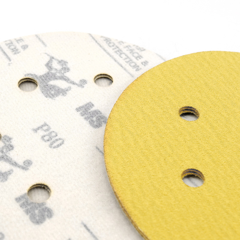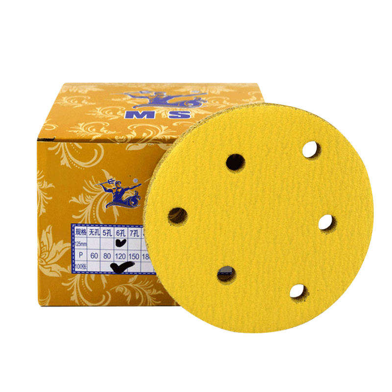 Mengshi 5 inch 6 hole dry frosted paper car grinding polishing disc sandpaper Self-adhesive flocking sandpaper back flocking yellow sand