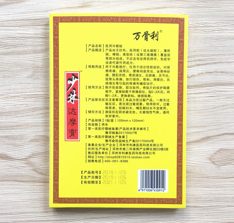 Shaolin Dharma plaster room official flagship Telford Hall Wan Bone Li cold compress paste 100 yuan 25 boxes