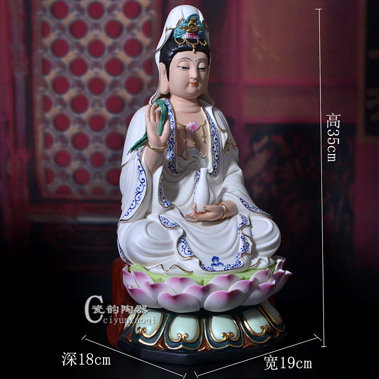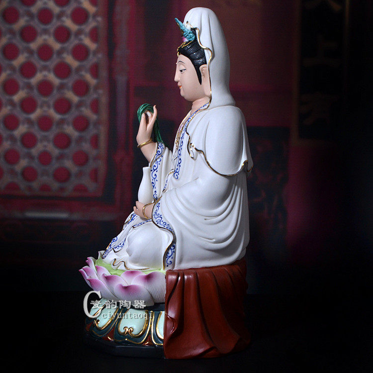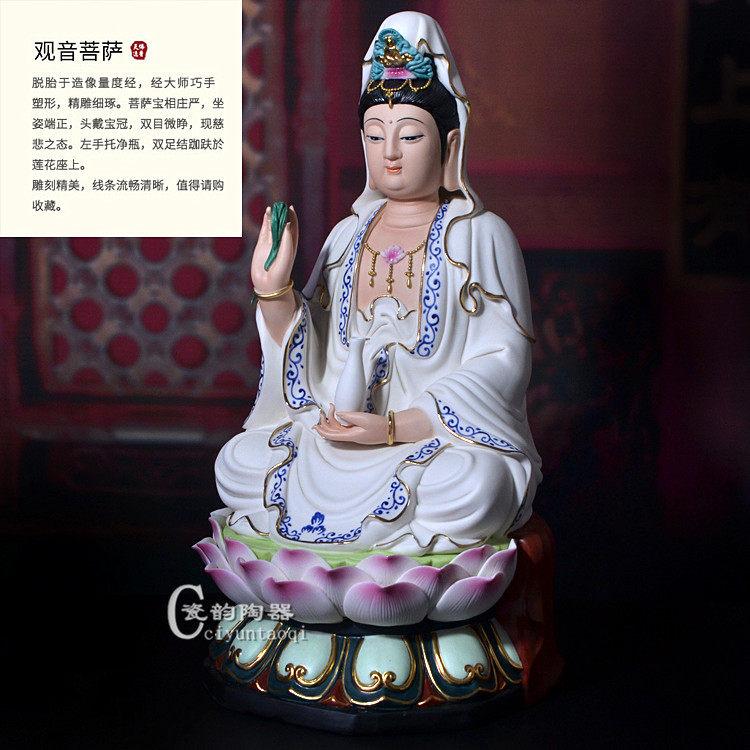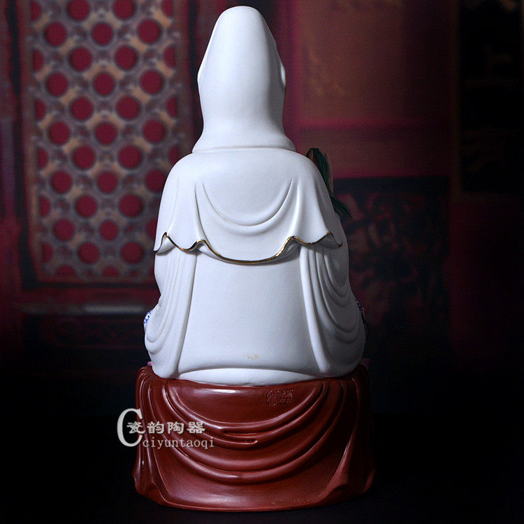 Ceramic Guanyin Buddha Statue Town House Feng Shui Offering Bodhisattva Ornament Dehua White Porcelain Hand Color Western Three Holy Guanyin Statue