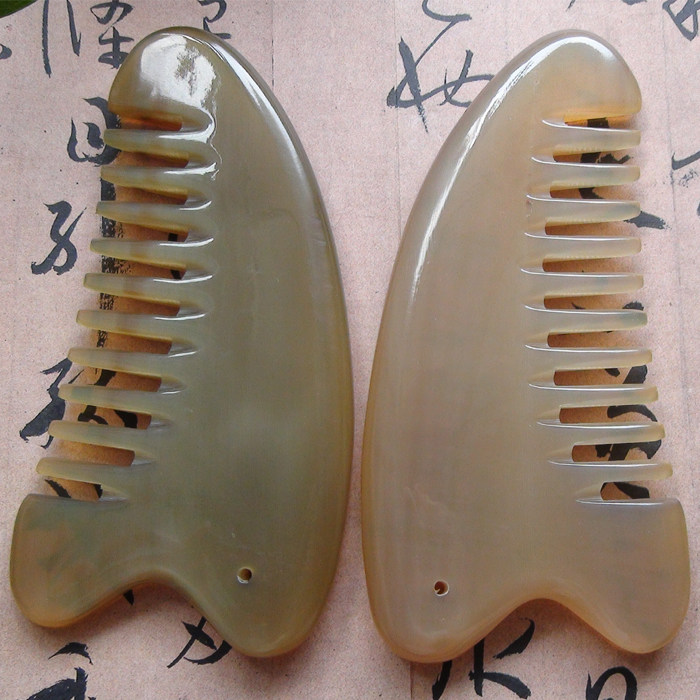 Natural Imported White Buffalo Horn Massage Comb Thick round Smooth Head Press Full Body Universal Scraping Board