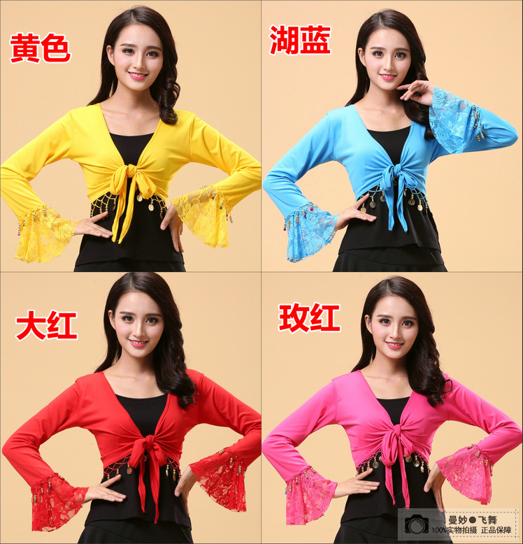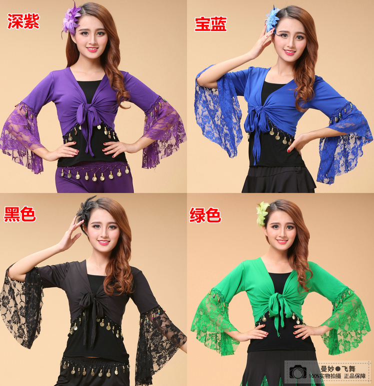 Spring Summer Square Dance Costume Cape Lace blouses lace dance Latin dance for adults to perform a horn sleeve workout practice