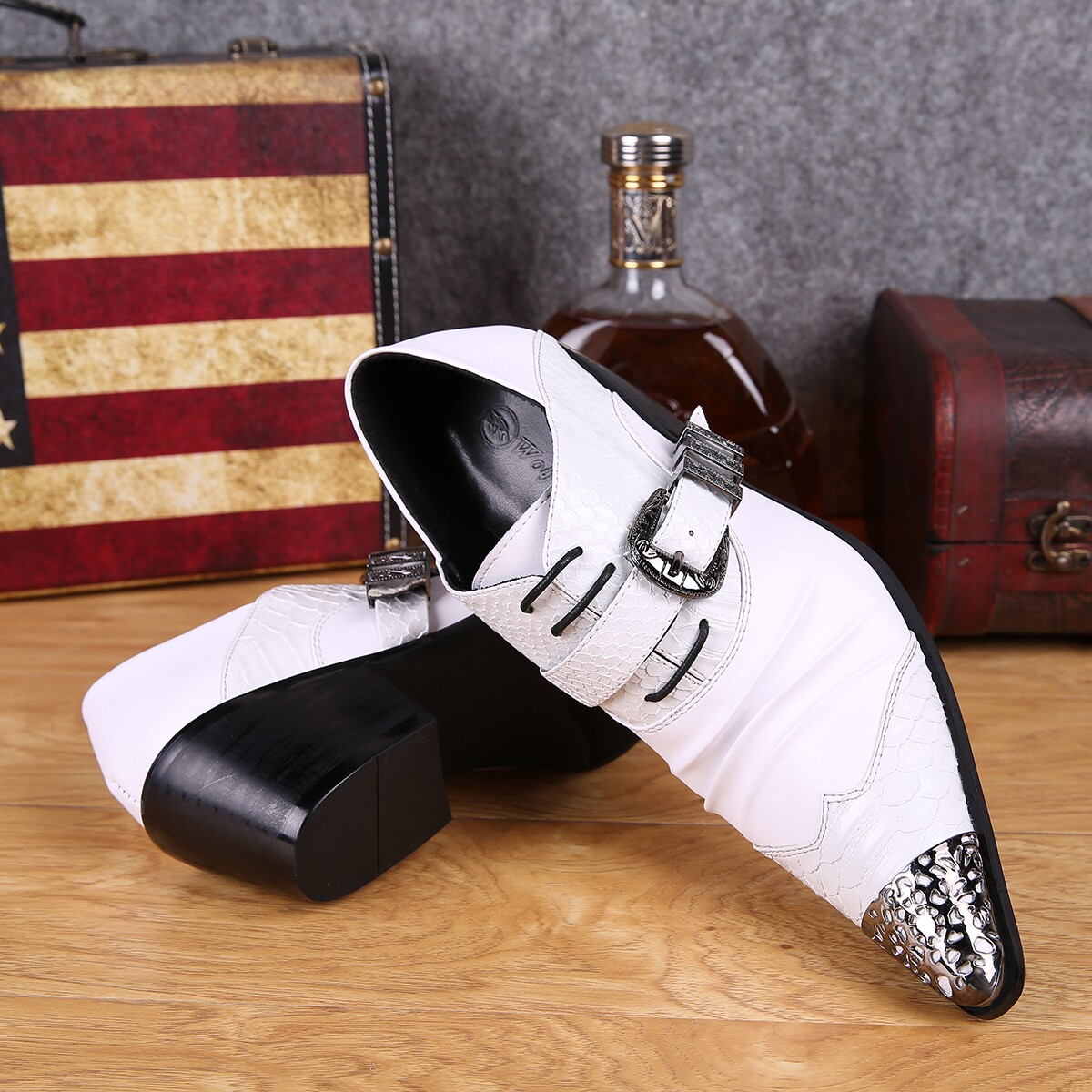 New pointed toe lace-up leather fish pattern British casual high-heeled business dress catwalk trend personality men's leather shoes