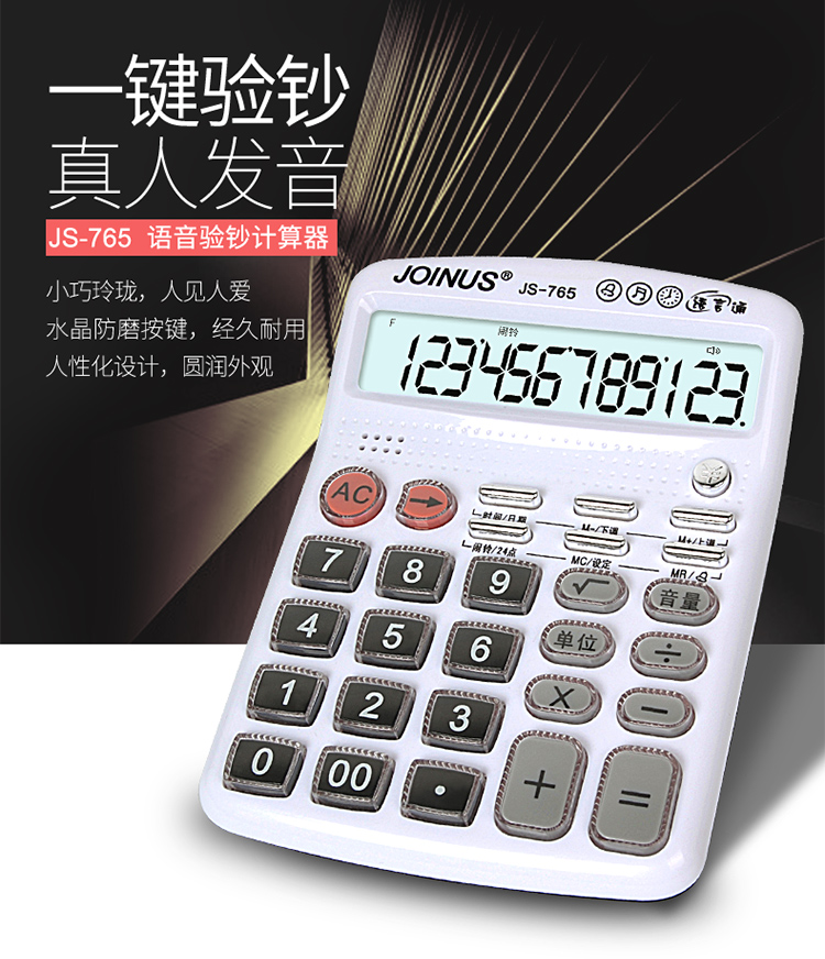 Voice calculator Zhongcheng 765 banknote inspection large screen crystal button white 12-digit computer