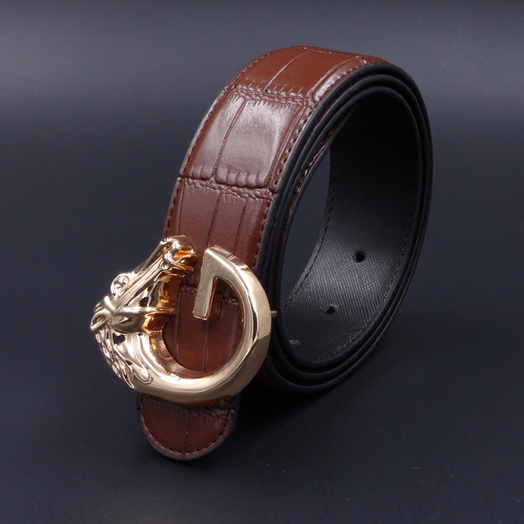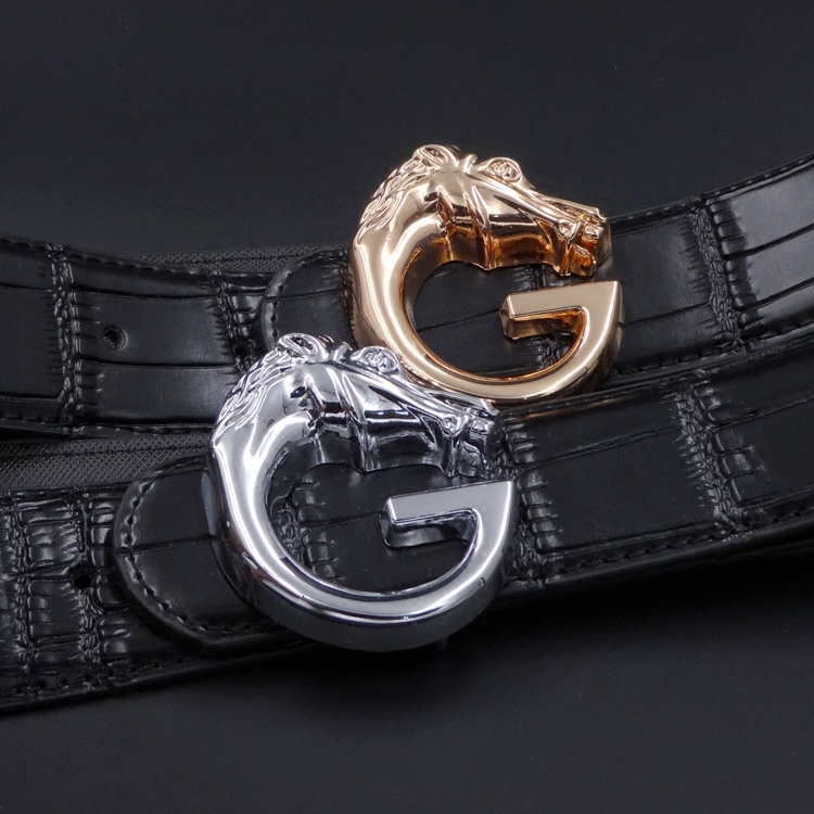 Men's leather calf leather strap Korean version horse head G letter smooth button trendy fashion casual personality woman wide pants belt-Taobao