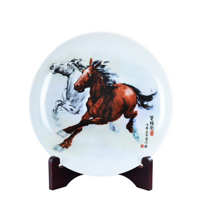 Porcelain Bojing Jingdezhen Ceramic plate decoration See disc swing piece Double Jun Matu Feng Jie Hemma Process Gift Craftsmanship Tray Rack