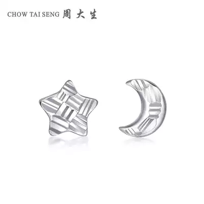 Zhou Shengsheng platinum earrings female Pt950 platinum earrings stars and moon asymmetrical earrings to send girlfriend