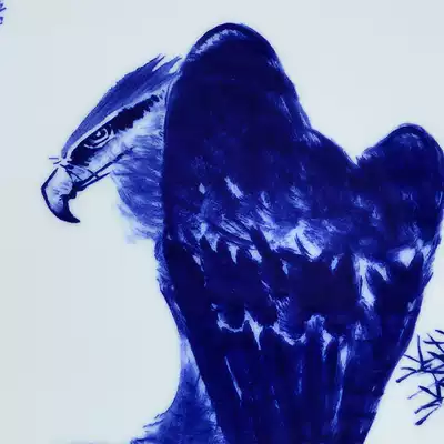 Jingdezhen ceramic plate decoration appreciation plate decoration crafts Wang Longfu far-sighted eagle wings blue and white porcelain