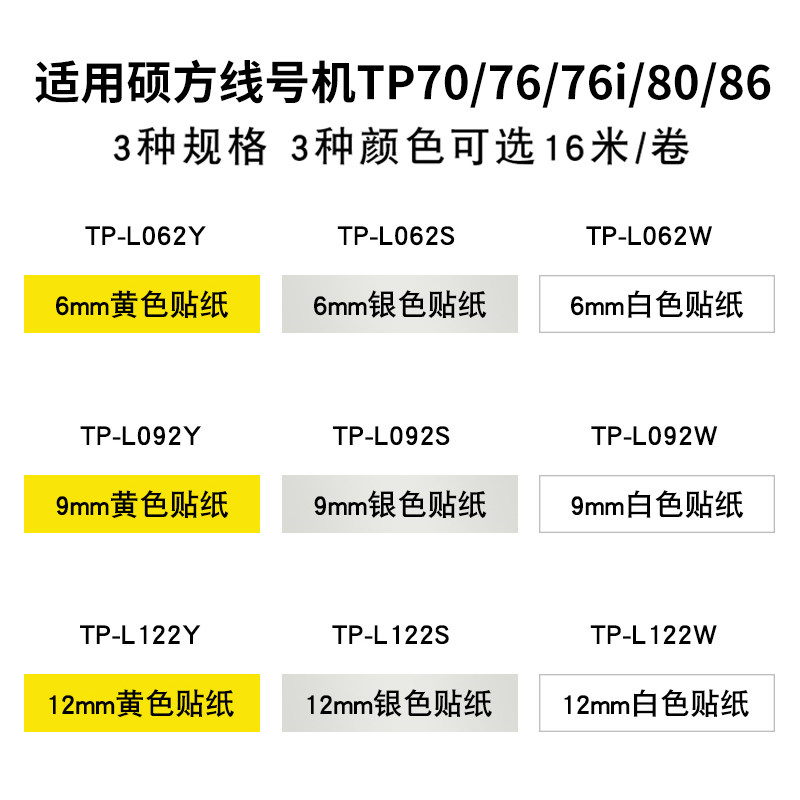 Original Shuofang line number machine TP70 76i sticker TP80 86 label paper 9mm yellow white Self-adhesive printing paper tape TP-L092W Sticker Sleeve typewriter number tube typewriter